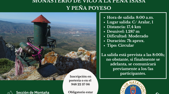 El próximo domingo 29 de marzo, nuestra sección de Montaña organiza una nueva salida desde el Monasterio de Vico hasta Peña Isasa y Peña Poyeso, en un recorrido circular exigente pero muy atractivo por su valor paisajístico.