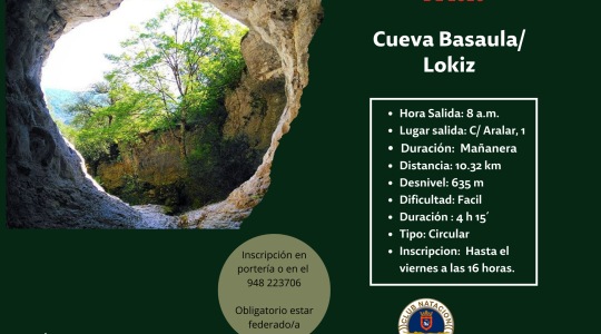 El próximo domingo 1 de febrero, nuestra Sección de Montaña organiza una salida a la Cueva Basaula/Lokiz para disfrutar de una excursión matutina de intensidad fácil.