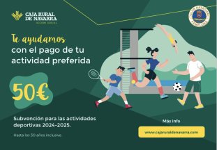 Aquellos socios y socias menores de 30 años que sean titulares de una cuenta en Caja Rural de Navarra tienen una ayuda de 50 euros para sufragar la inscripción a cualquiera de las actividades deportivas del Club. Para obtener la ayuda la persona menor de 30 años debe tener cuenta en esta entidad, o abrirla si todavía no la tiene. Además debe presentar hasta el 30 de octubre en la sucursal el justificante de pago de la actividad deportiva.