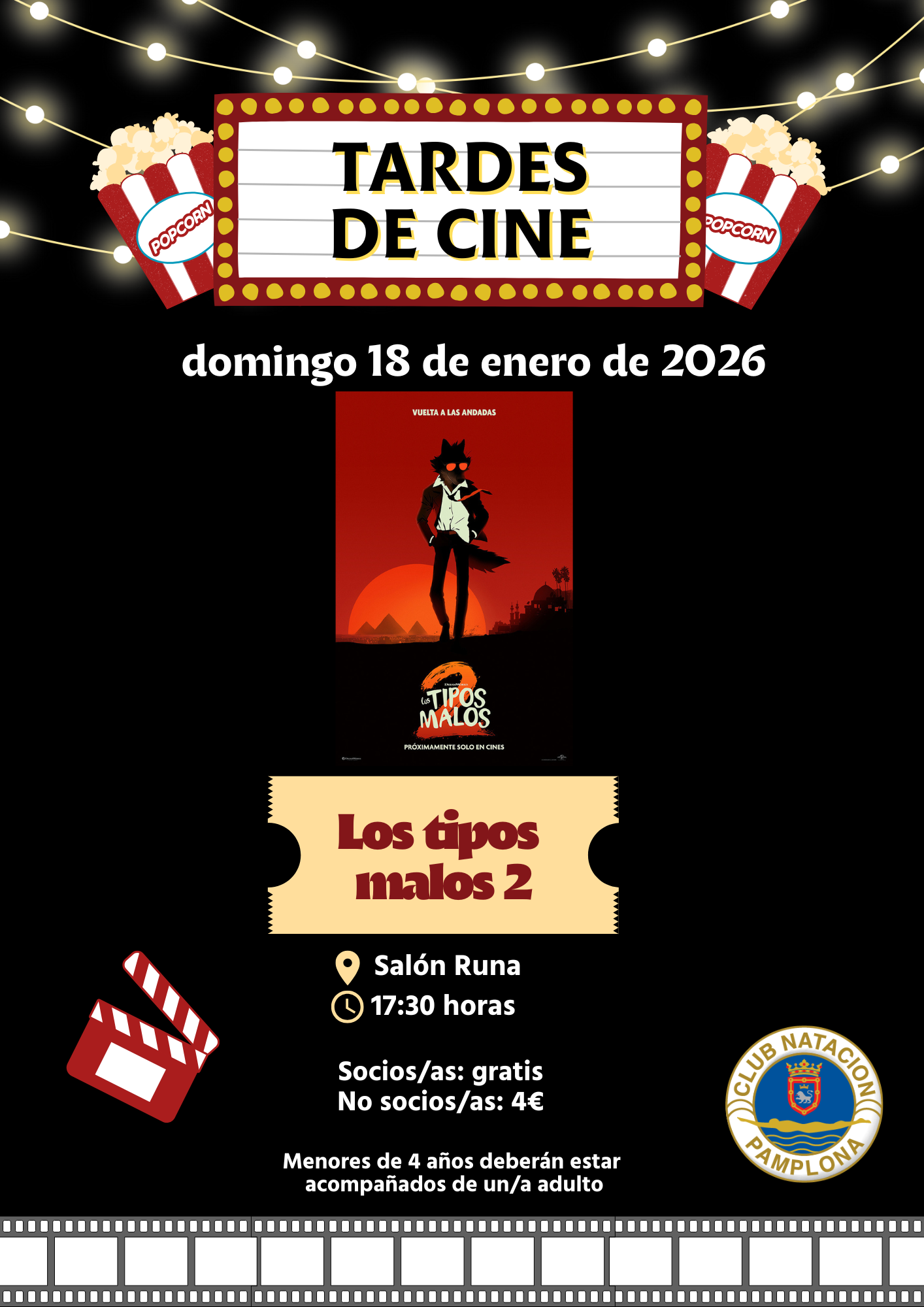 Este domingo 18 de enero, el cine infantil regresa al Salón Runa con la proyección de “Los tipos malos 2”, una divertida película llena de acción y humor para disfrutar en familia. La sesión comenzará a las 17:30 horas.