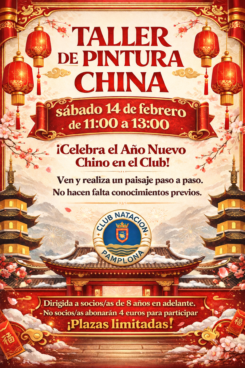 El sábado 14 de febrero, con motivo del Año Nuevo Chino, realizaremos una actividad muy especial: un Taller de Pintura China, dirigido a socios y socias de todas las edades a partir de 8 años. La sesión será impartida por el profesor de pintura Ángel Presencio.