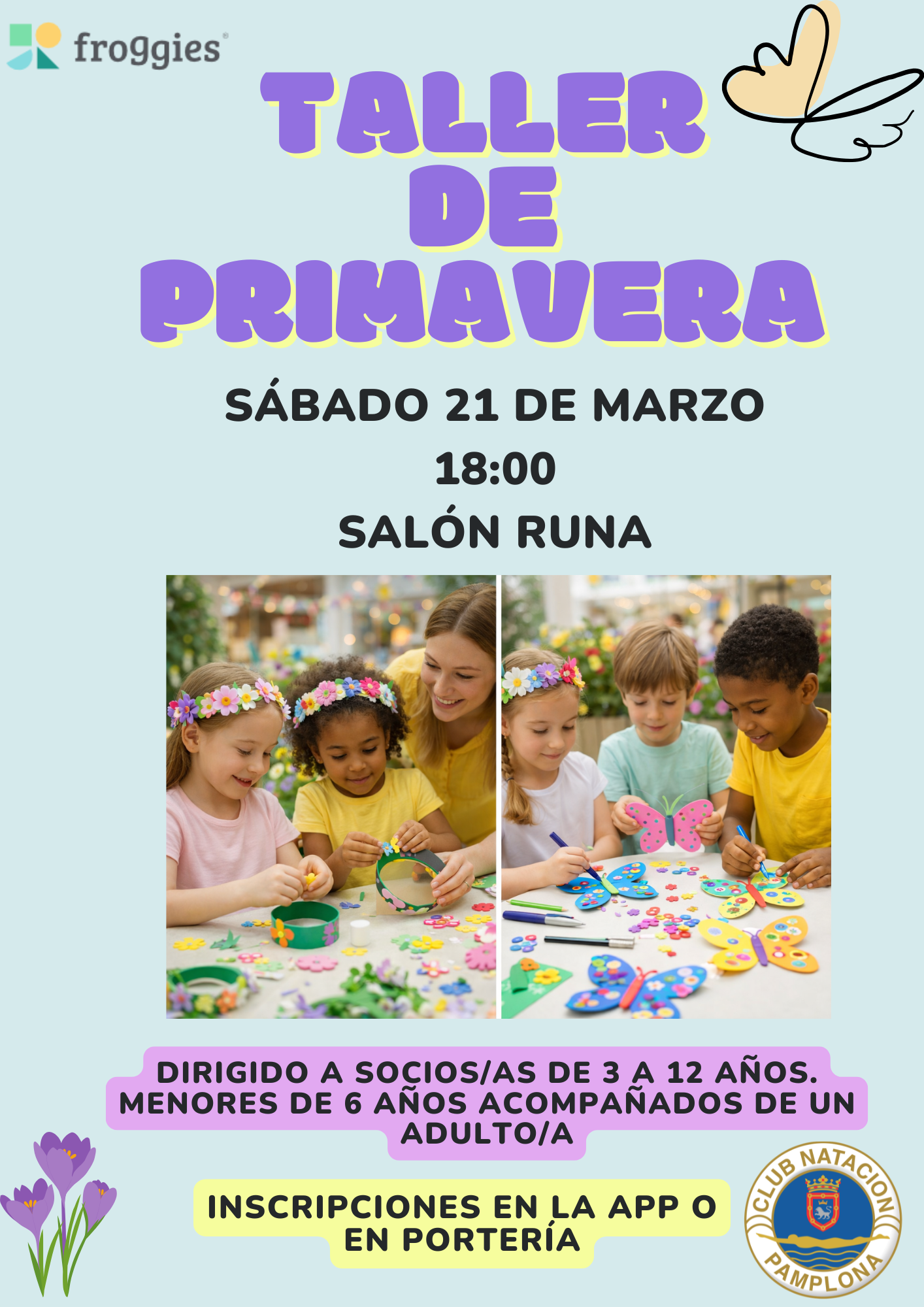 El próximo sábado 21 de marzo a las 18:00, organizamos un divertido Taller de Primavera en el Salón Runa para niños y niñas de 3 a 12 años. Los menores de 6 años deberán asistir acompañados de un adulto/a.