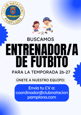 El Club Natación Pamplona busca entrenadores/as para los equipos de futbito txiki de la próxima temporada, con inicio a partir de mediados de septiembre.