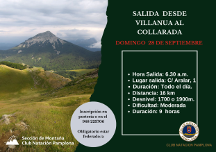 Este domingo 28 de septiembre, la Sección de Montaña del Club Natación Pamplona organiza una emocionante excursión desde Villanúa al Collarada, una de las cumbres más emblemáticas de la zona.