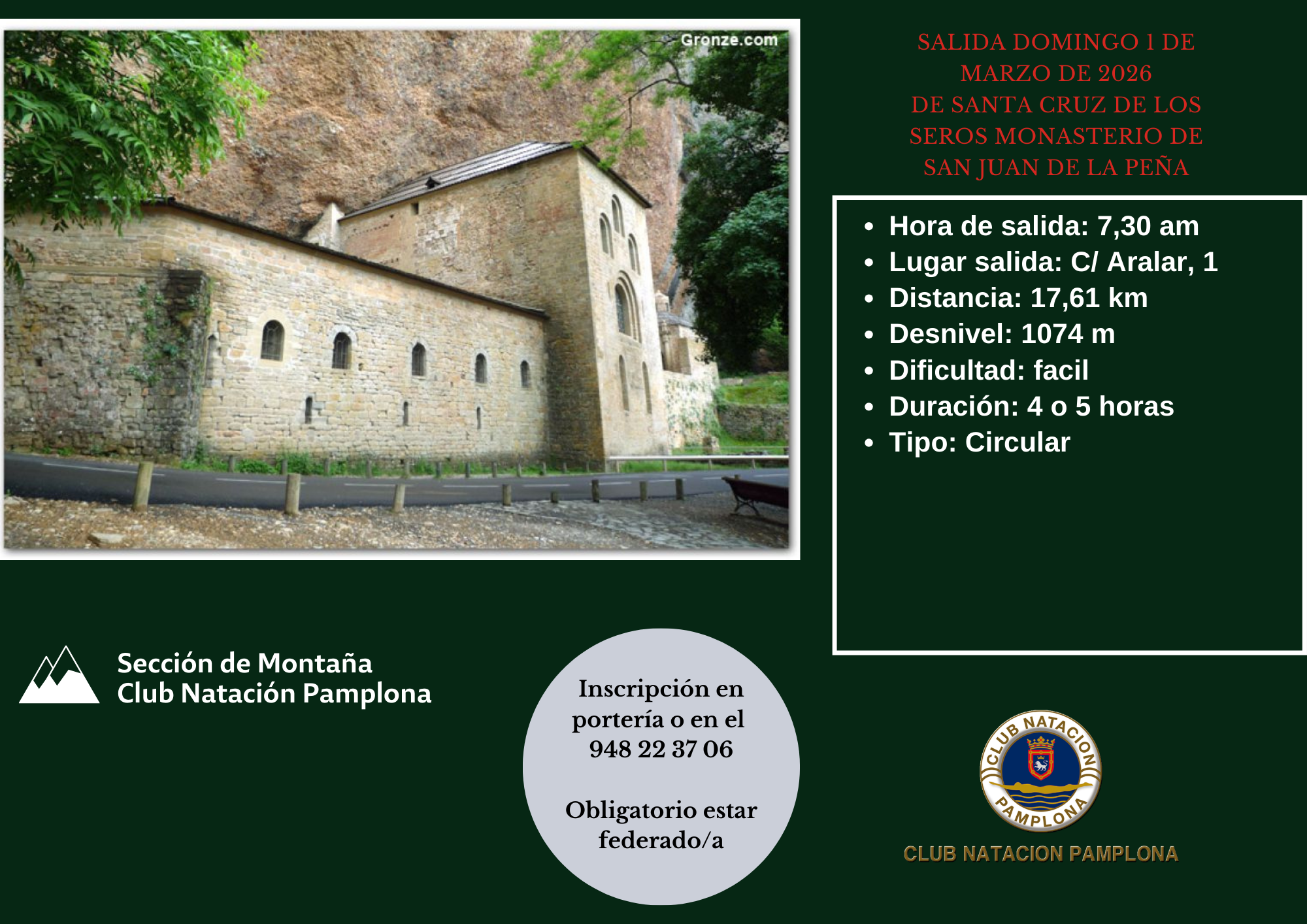 El próximo domingo 1 de marzo, nuestra Sección de Montaña organiza una nueva salida con recorrido circular desde Santa Cruz de los Seros hasta el emblemático Monasterio de San Juan de la Peña. Una excursión completa que combina patrimonio y naturaleza en grupo.