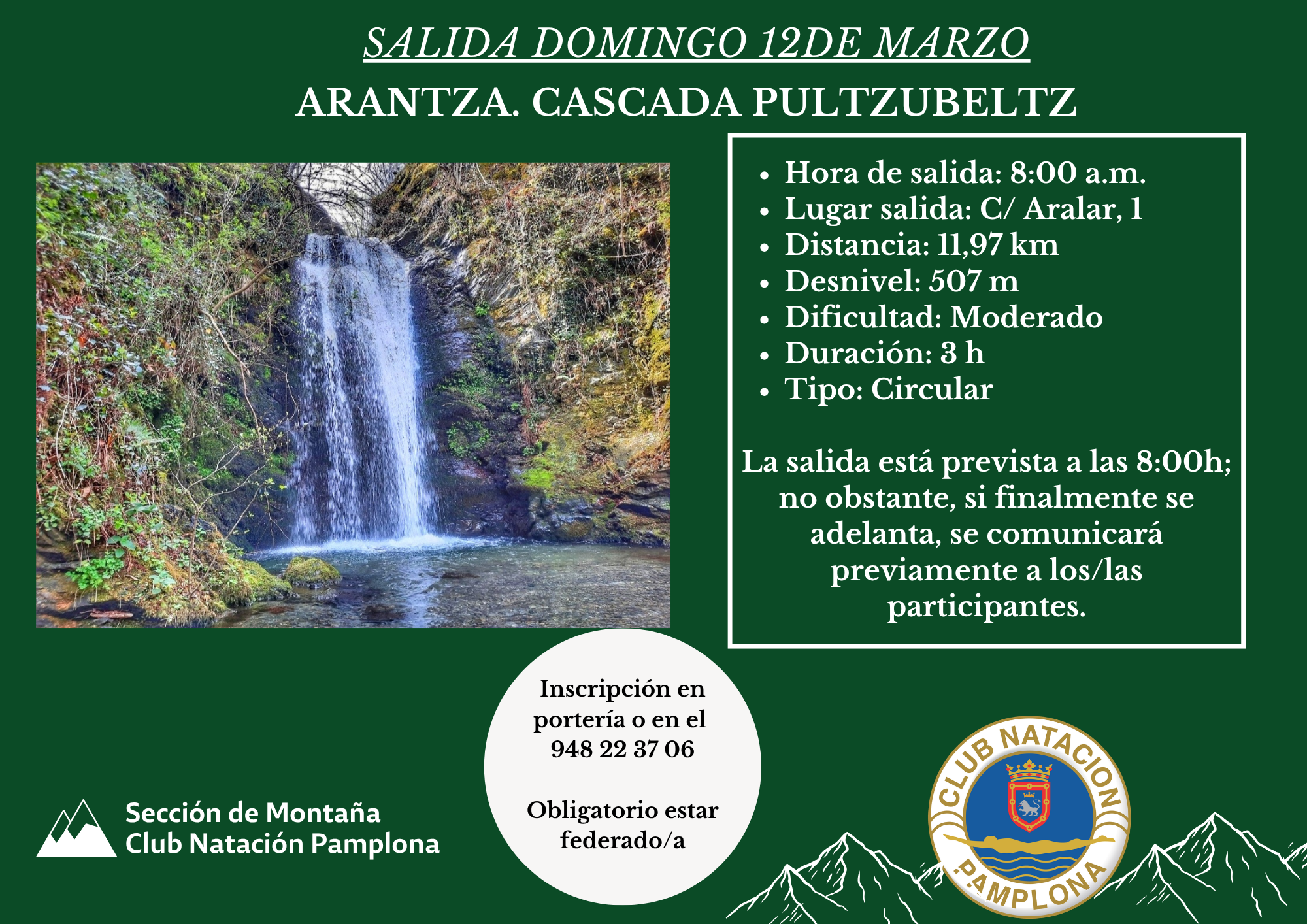 El próximo domingo 12 de marzo, nuestra sección de Montaña organiza una nueva salida para descubrir el entorno de Arantza y la espectacular Cascada Putzubeltz. Se trata de un recorrido circular de gran belleza natural, ideal para disfrutar de los paisajes verdes y el agua en esta época del año.