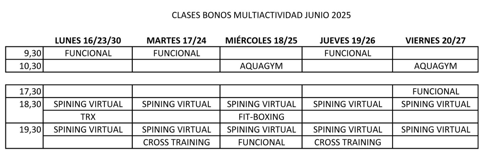 La temporada deportiva 2024-2025 está en su recta final, pero los socios y socias inscritos a nuestros bonos multiactividad todavía tienen la oportunidad de entrenar hasta que termine el mes de junio. Las clases regladas acaban el viernes día 13, pero tal y como se acordó la temporada pasada los y las más deportistas podrán continuar hasta el lunes 30 de junio con el horario de clases que pueden consultar