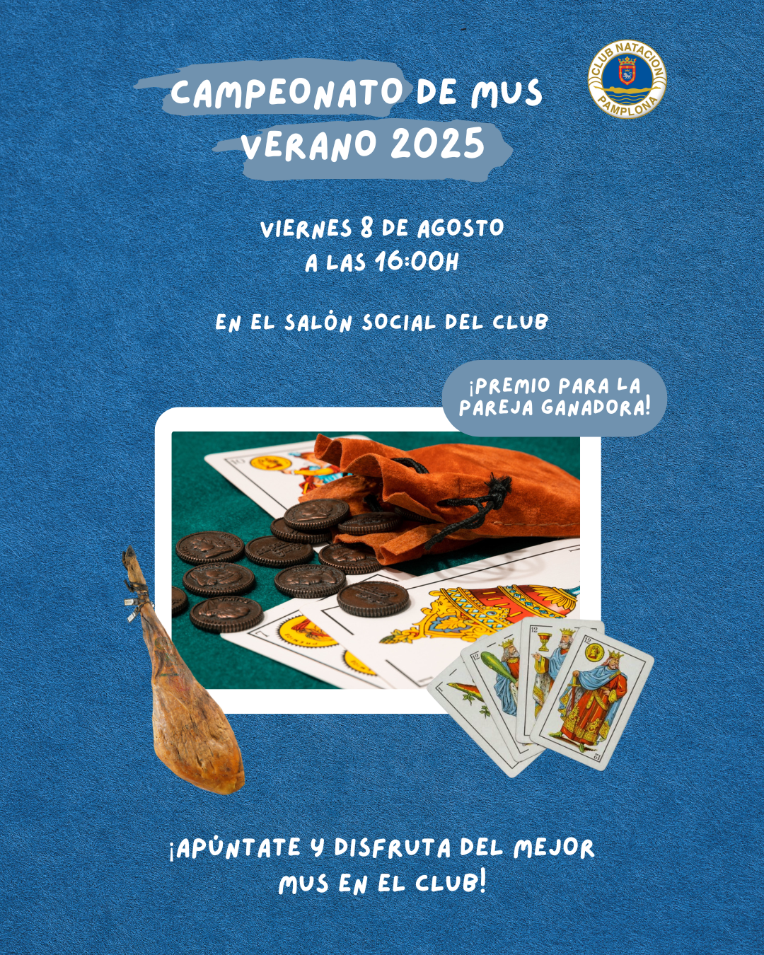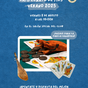 El próximo viernes 8 de agosto, a las 16:00 h, se celebrará en el Salón Social del Club una nueva edición del tradicional Campeonato de Mus de verano.