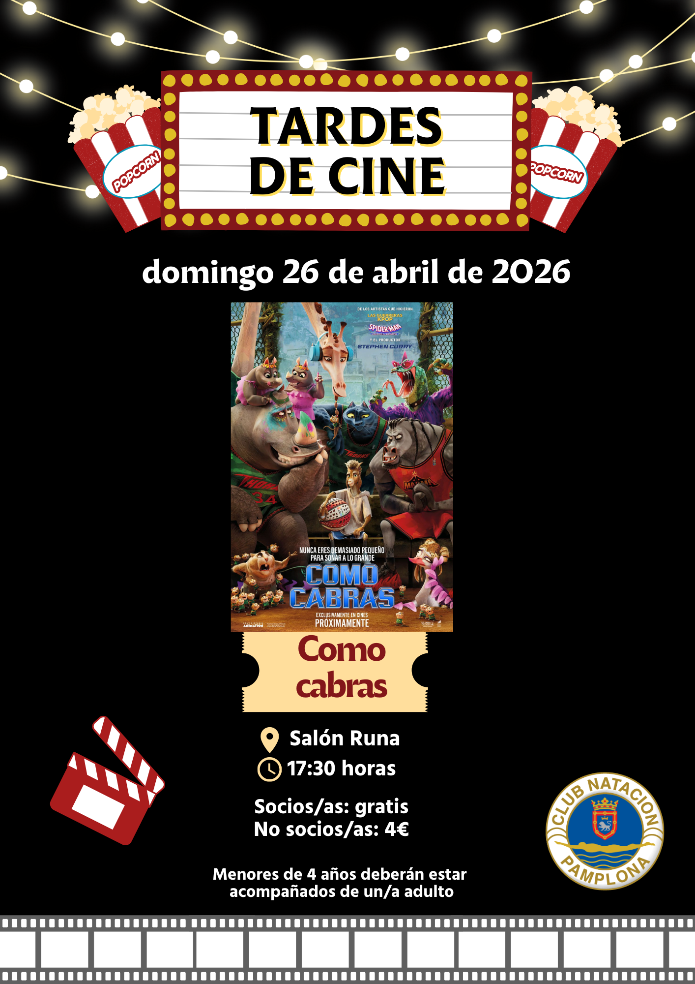 Esta será la última sesión de Tardes de Cine antes del verano, por lo que animamos a todas las familias del Club a aprovechar esta ocasión y compartir una tarde diferente juntos.