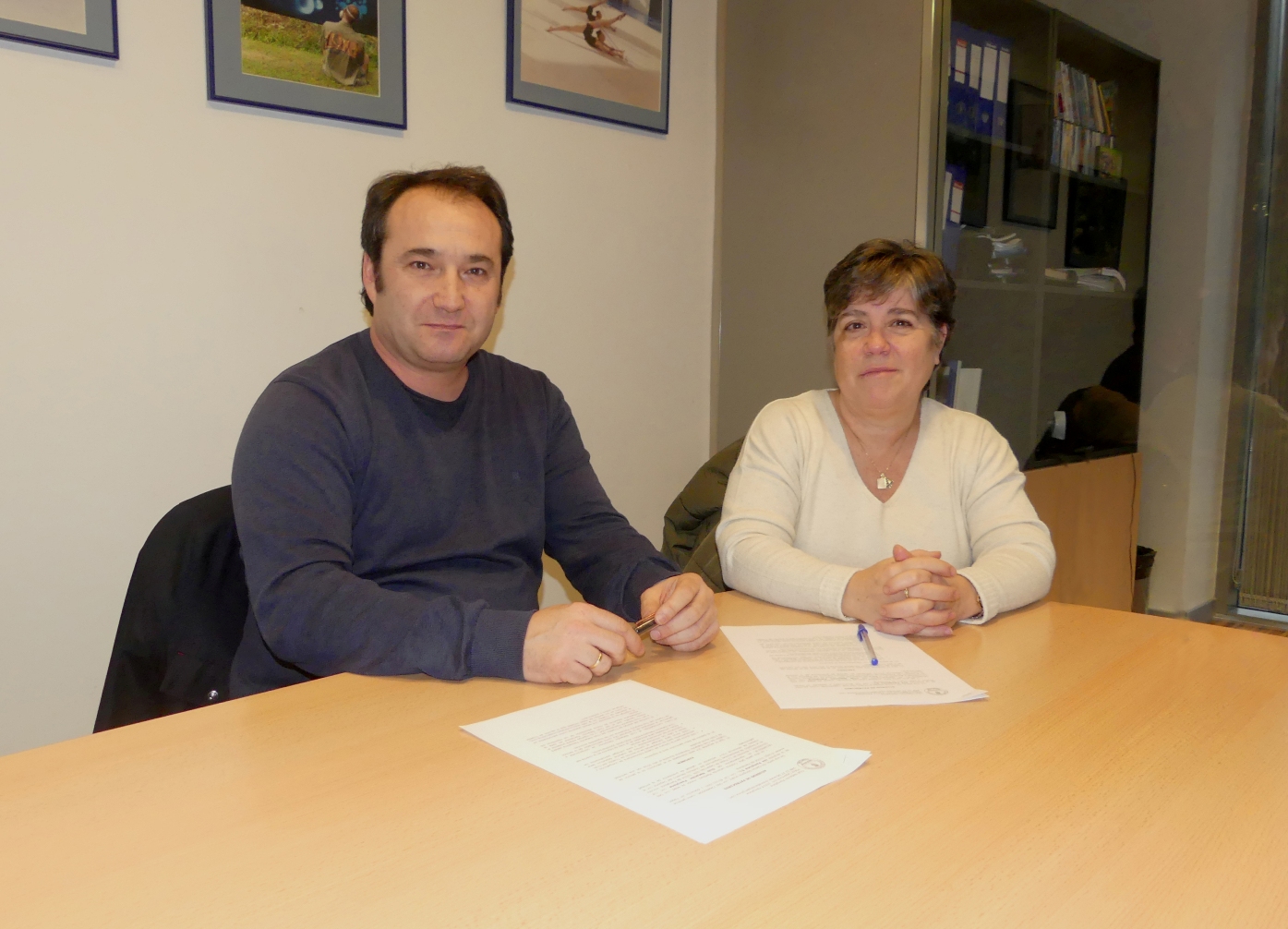 Cristina Latienda. Presidenta del Club y Carlos Góngora, responsable de IZ4, durante la firma del acuerdo de patrocinio