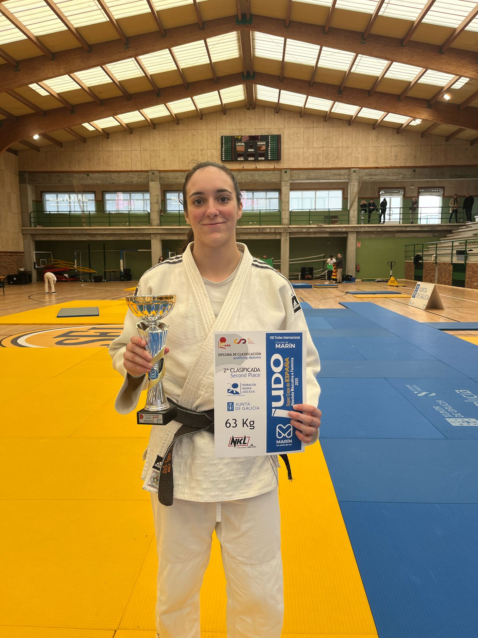 El pasado sábado 15 de febrero, el Pabellón de Deportes del Colegio San Narciso, en la localidad pontevedresa de Marín, acogió la primera de las Copas de España de la categoría Senior, en la que la judoka del Club, María Ramos logró una meritoria segunda posición en la categoría -63 kg