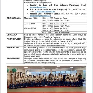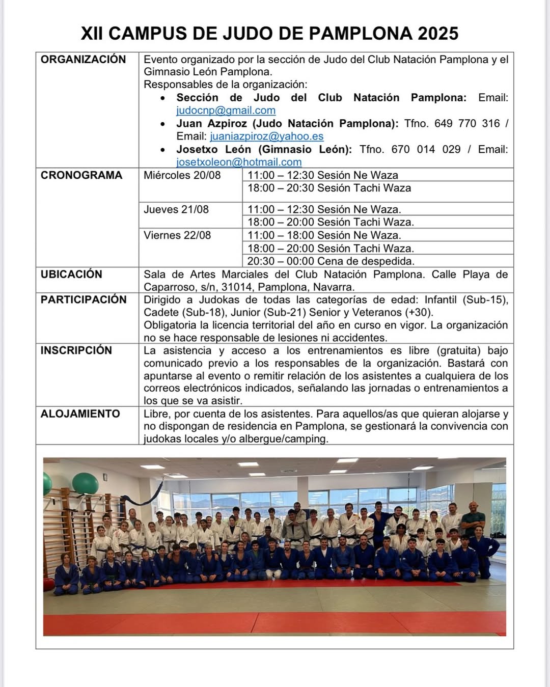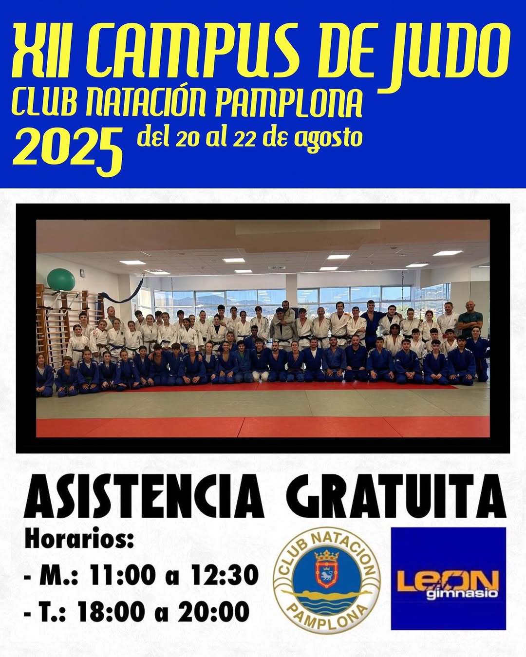 Del 20 al 22 de agosto, el Club Natación Pamplona celebrará la duodécima edición de su Campus de Judo, una cita consolidada dentro de las actividades deportivas de verano del Club.