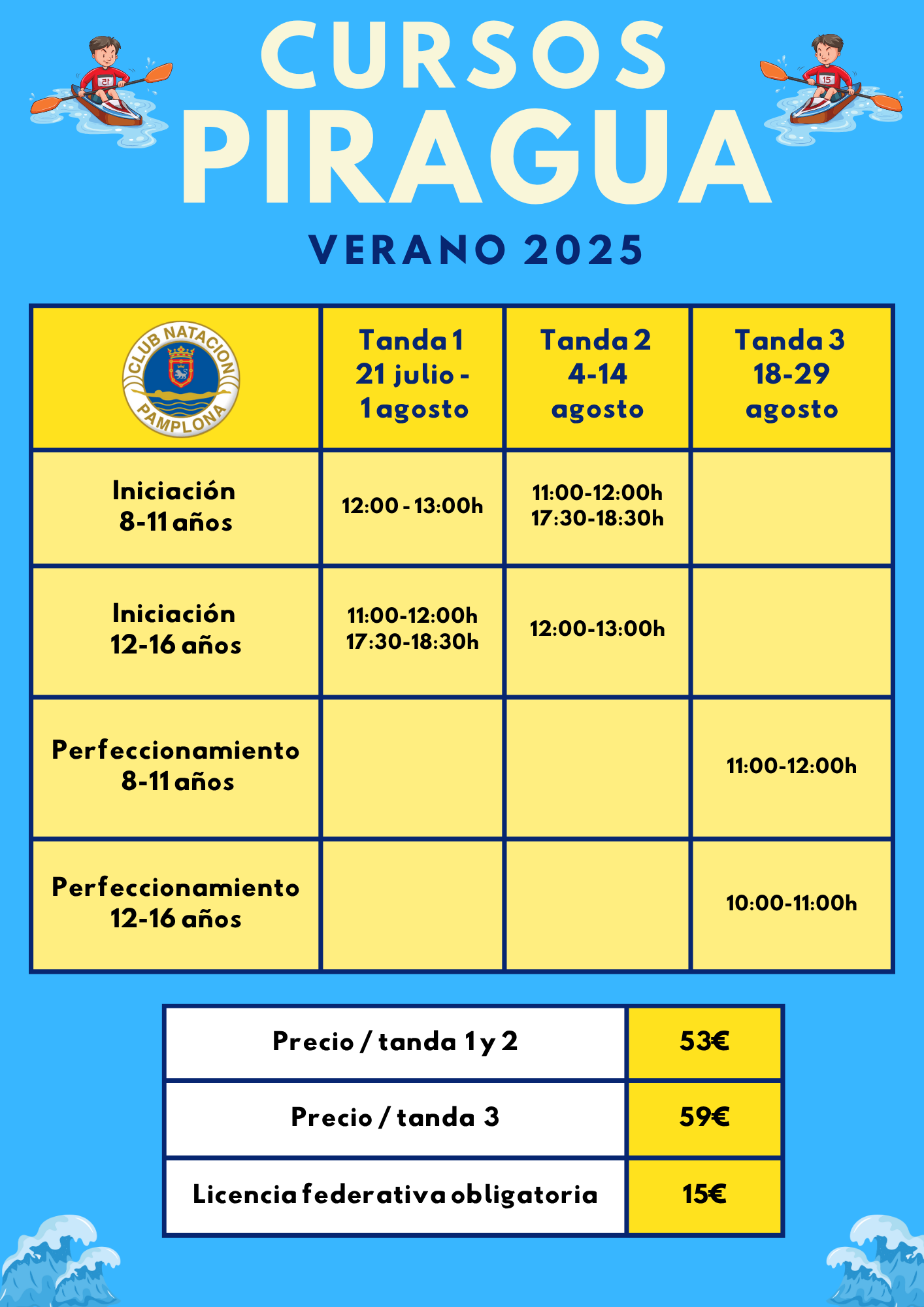Este verano, el Club Natación Pamplona vuelve a organizar los tradicionales cursos de piragua, una oportunidad ideal para que los y las más jóvenes del Club disfruten del río mientras aprenden y/o perfeccionan su técnica en un entorno seguro y divertido.