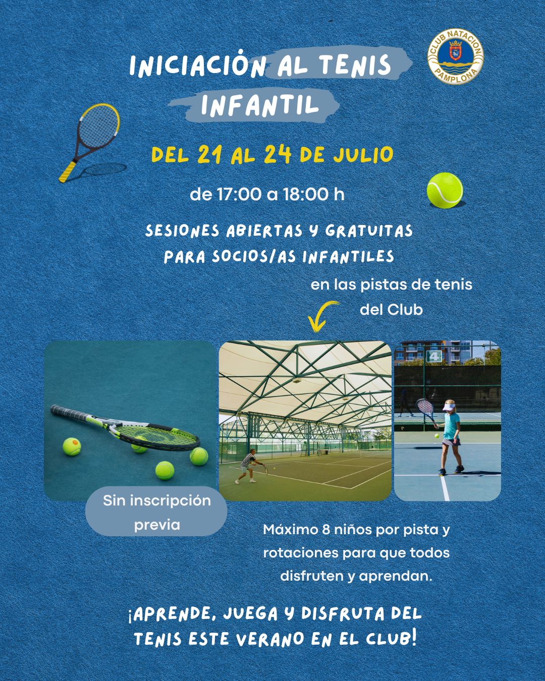 Del 21 al 24 de julio, el Club Natación Pamplona organiza sesiones gratuitas de iniciación al tenis dirigidas a socios y socias infantiles.